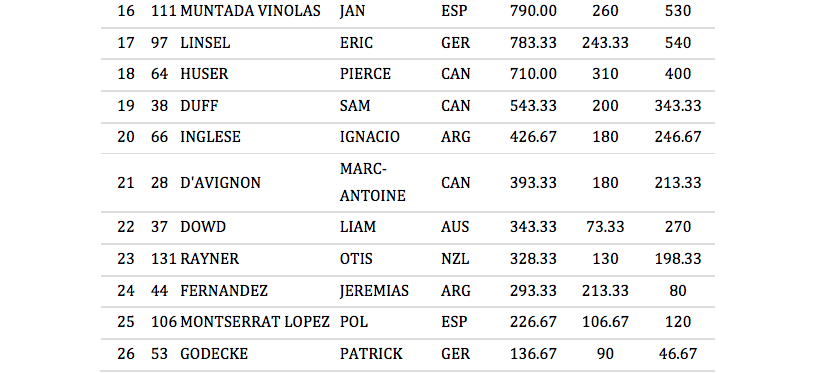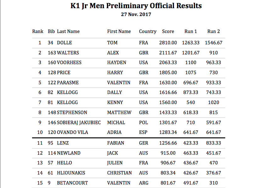 2017 ICF Freestyle World Championships – Junior Men Prelims Results (Top 10 move to semi finals)