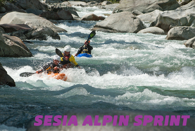 With hot and sunny days all week, it’s been rising levels throughout Valsesia. Italy’s prime creeking location is a plumb right now. Prime conditions await this weekend Valsesia River Festival with Gene17Kayaking. A spring gathering event, with coaching clinics and movie night on Friday. Plus a team race down the Alpin Sprint, a fine Class IV boulder garden run. And DJ Ciano hits some highlights for a feet stomping Saturday night at il Gatto e la Volpe Camping in Campertogno, Italy.