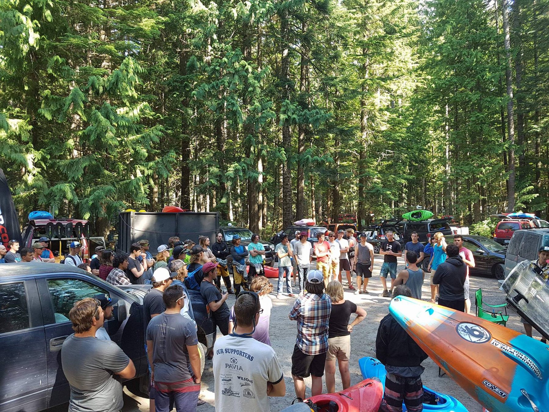 A warm-up race held on Friday 14th July on a nearby Whistler classic, the Upper Cheakamus river, was used to seed racers start times and get the competitive banter flowing.