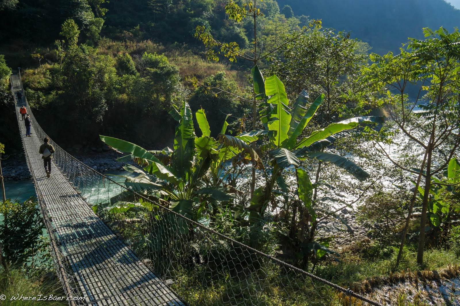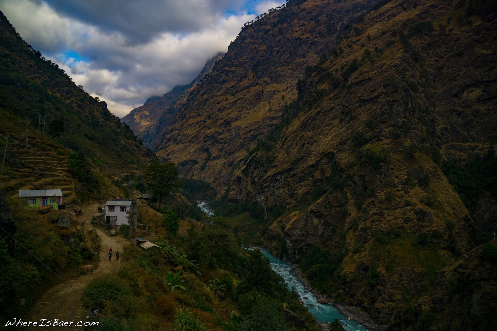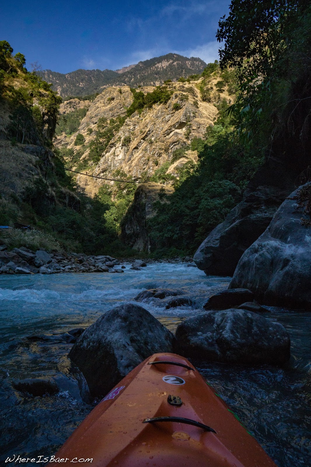 The early morning light illuminated the ridiculously steep valley as we hiked back down to the river. Our first rapid was rowdy and got us back in the spirit. The river was once again producing amazing whitewater, one great rapid after the next. Thankfully, we were able to boat scout significantly more rapids on the second day. The only portage that we encountered had a marginal line, but we just weren’t feeling it. Late on day two we stumbled upon a hot spring on river left (next time I might plan on camping at this location and enjoying the hot springs into the evening), but we continued down to the village of Lamjung where we spent the night.