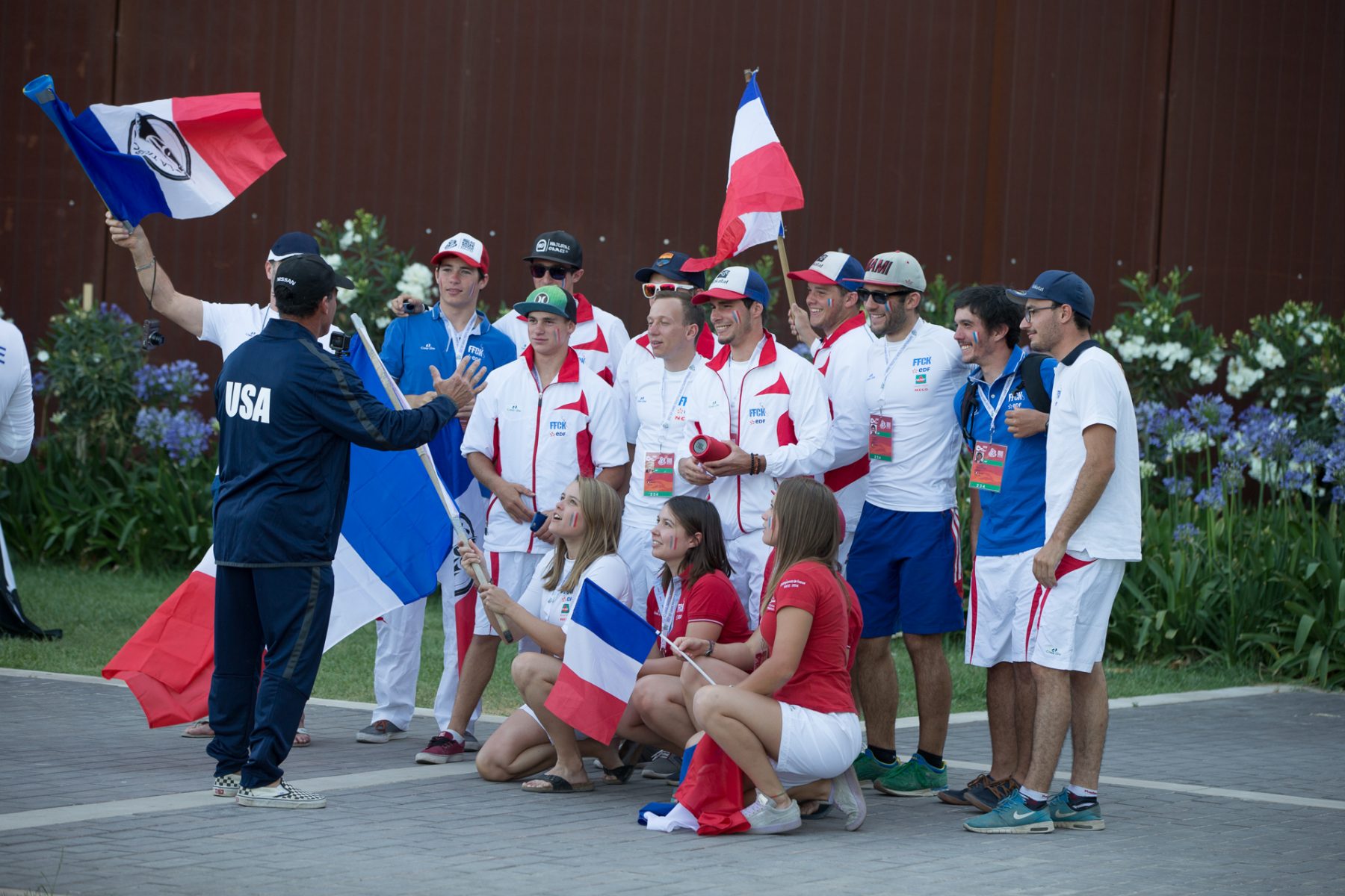 EJ asking his way to the French team minutes before the opening ceremony ©Peter Holcombe/kayaksession.com