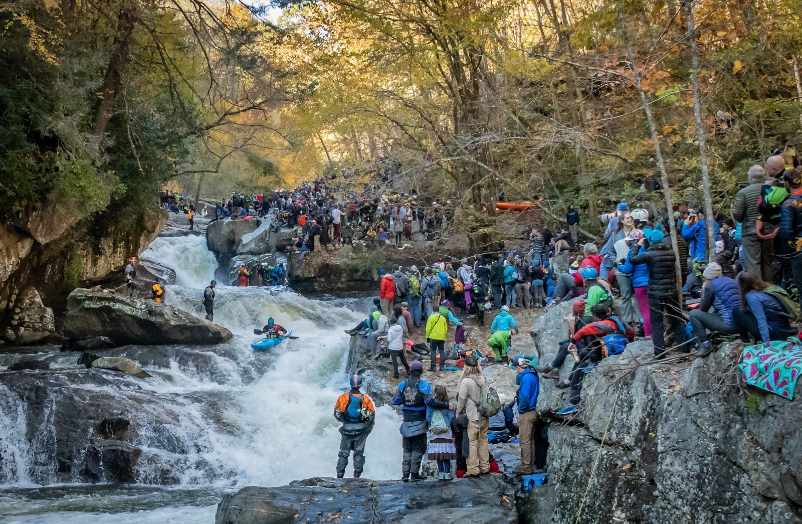 ©Marc Hunt – The crowd was next level! More than 2000 people lined the banks, filled the trails and paddled through the Green River to watch and be a part of the 23rd Green River Narrows Race.
