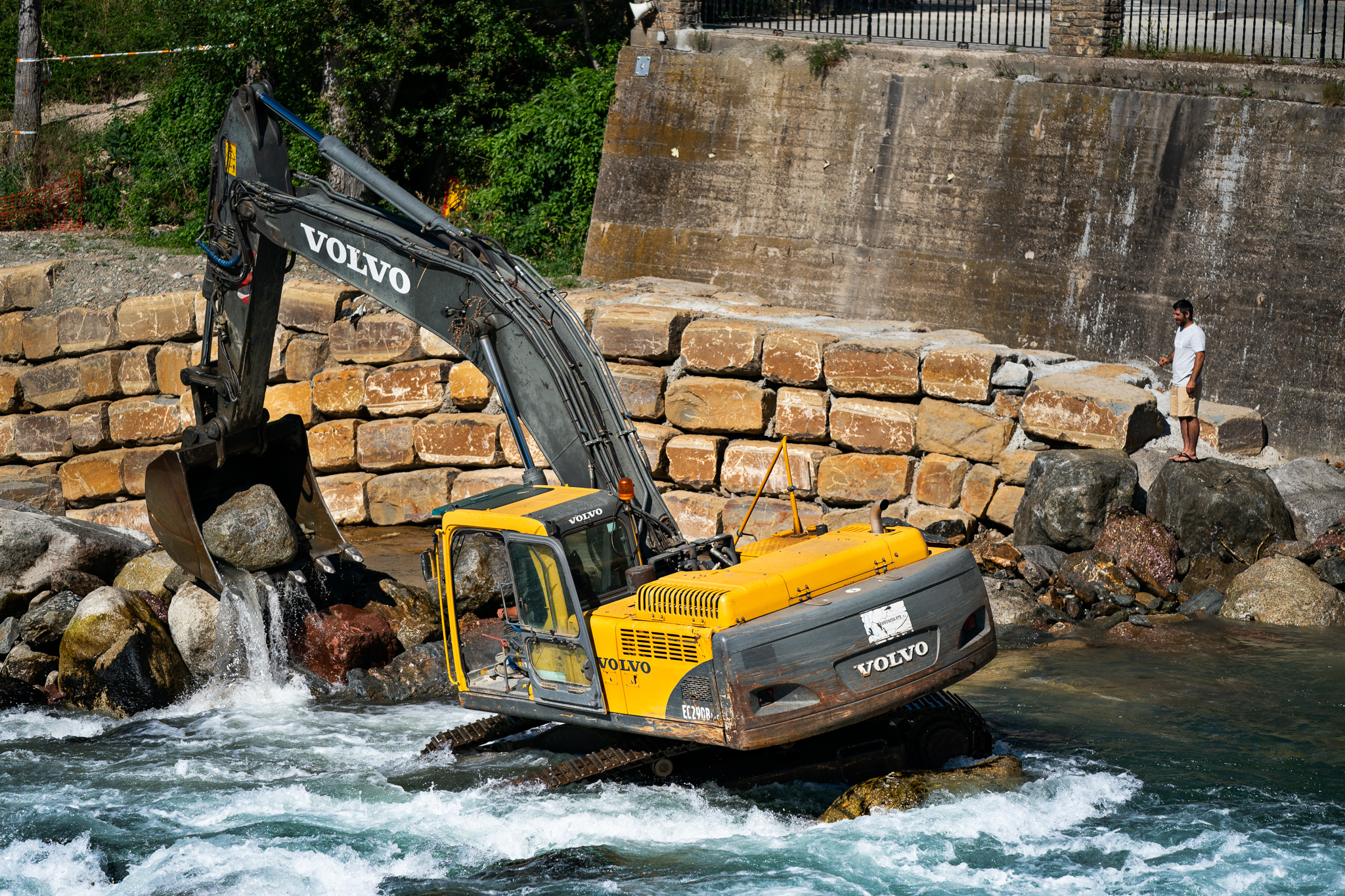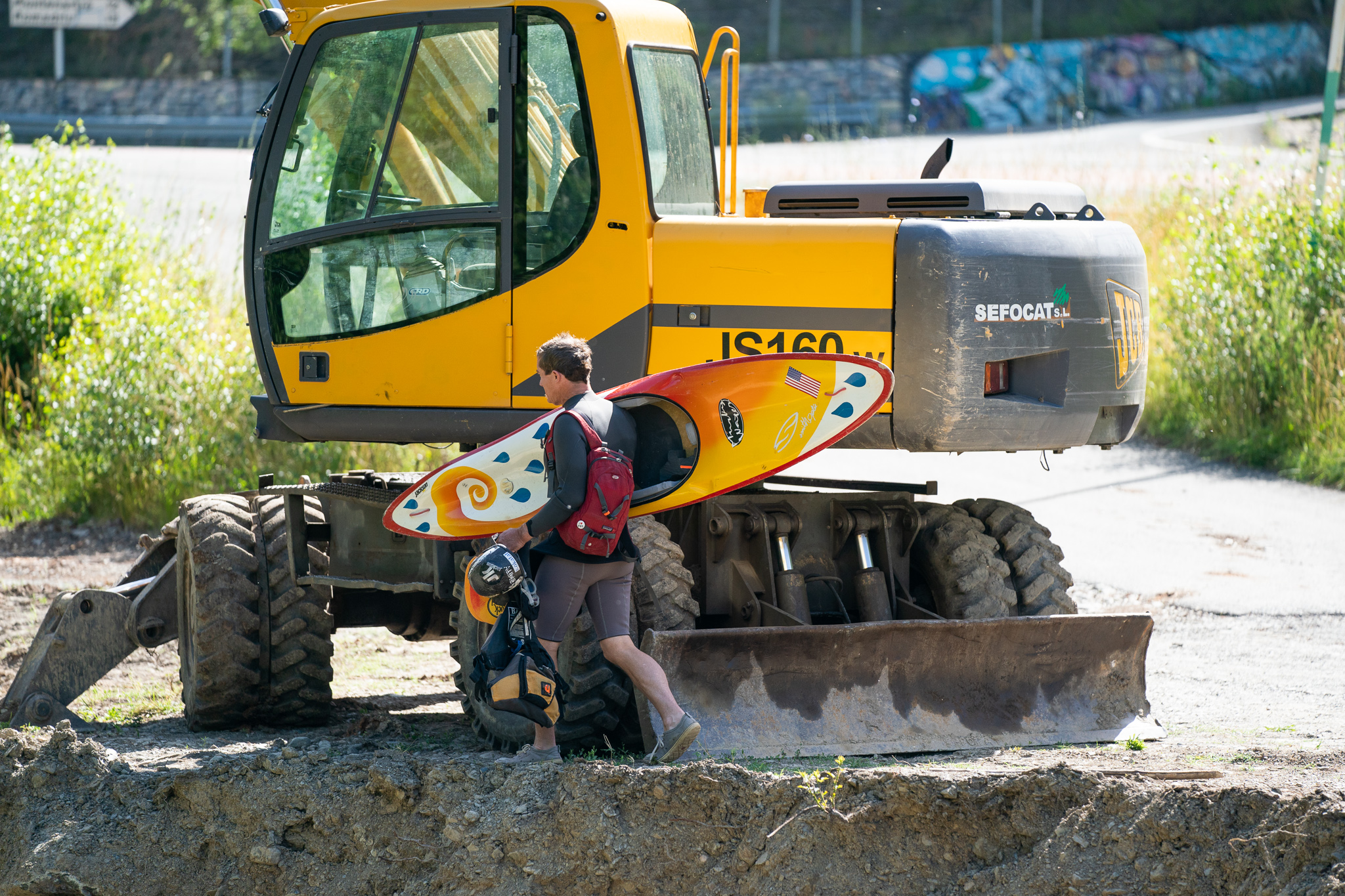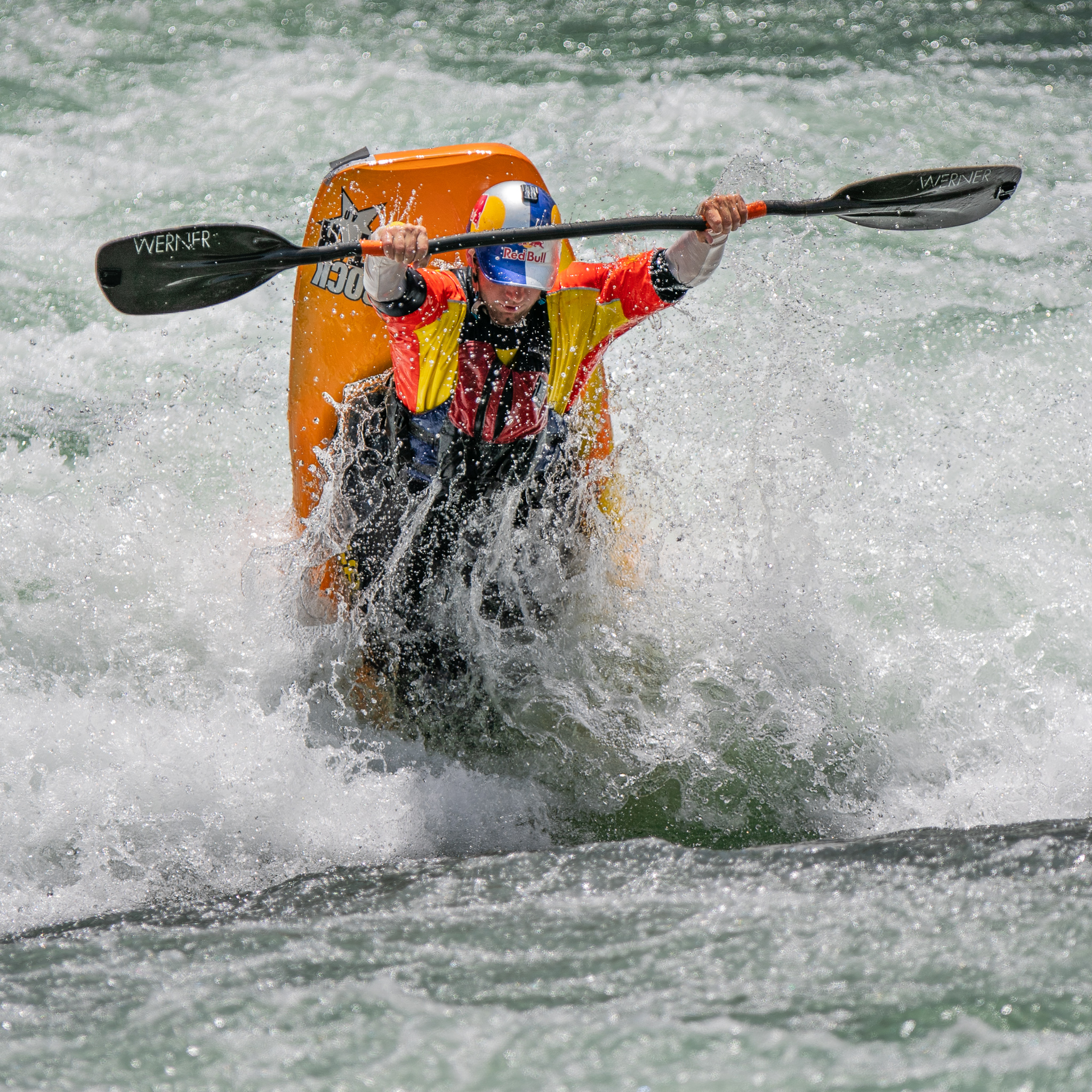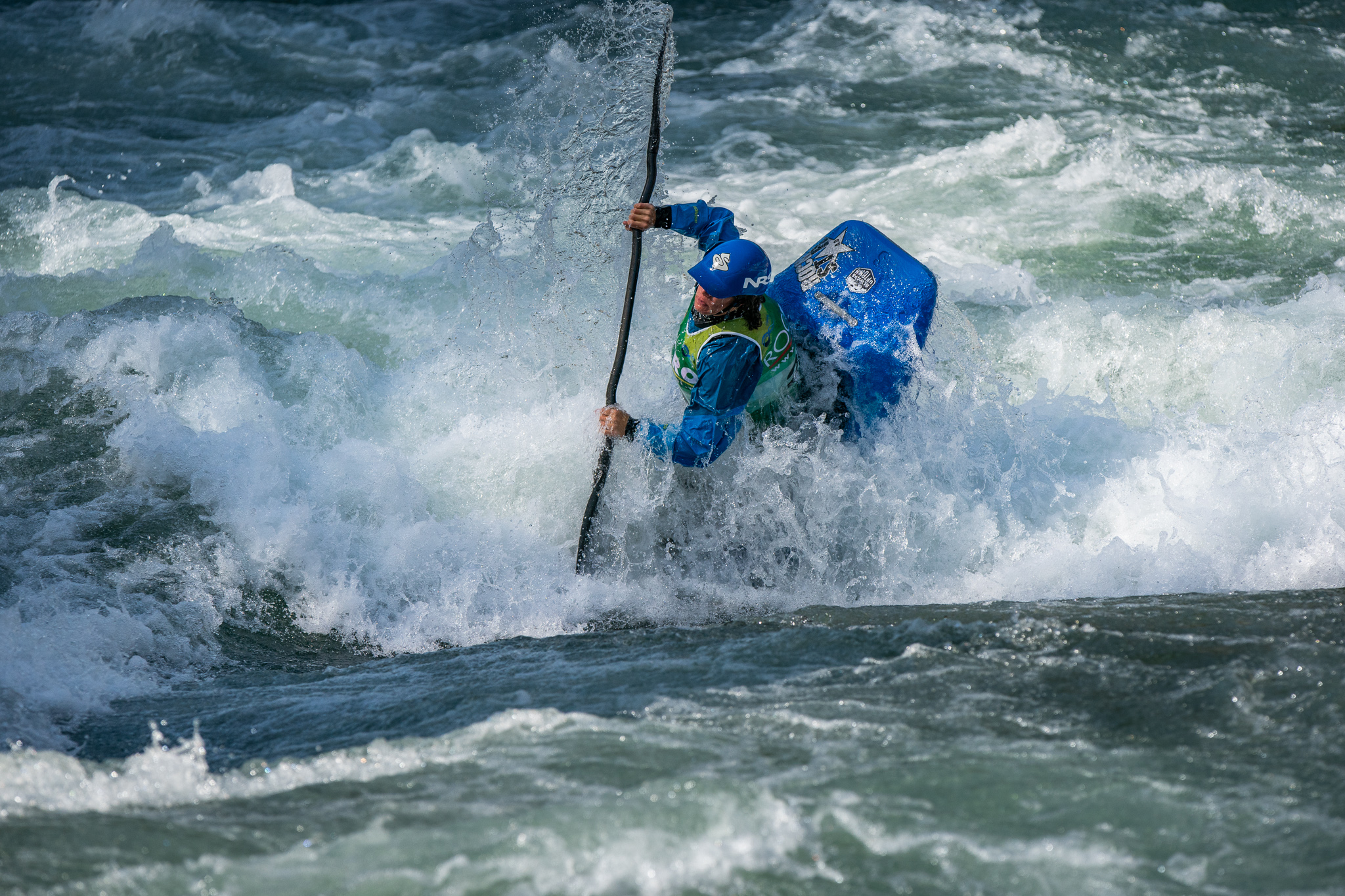 Twelve days ago there was an excavator in the riverbed moving around the boulders that form the feature in an effort to make it a little deeper.  The days following deliver a wide variety of flow rates as event officials and athletes debate ideal water levels for the upcoming world championships.  While the tricks are easier at lower flows, the resounding smack of a hull smashing on the river bottom makes everyone within earshot shudder.  Higher flows prove problematic as well.  Eight days before the kickoff the 2019 ICF World Championships, the feature is set and athletes are chomping at the bit to finalize their competition rides.
