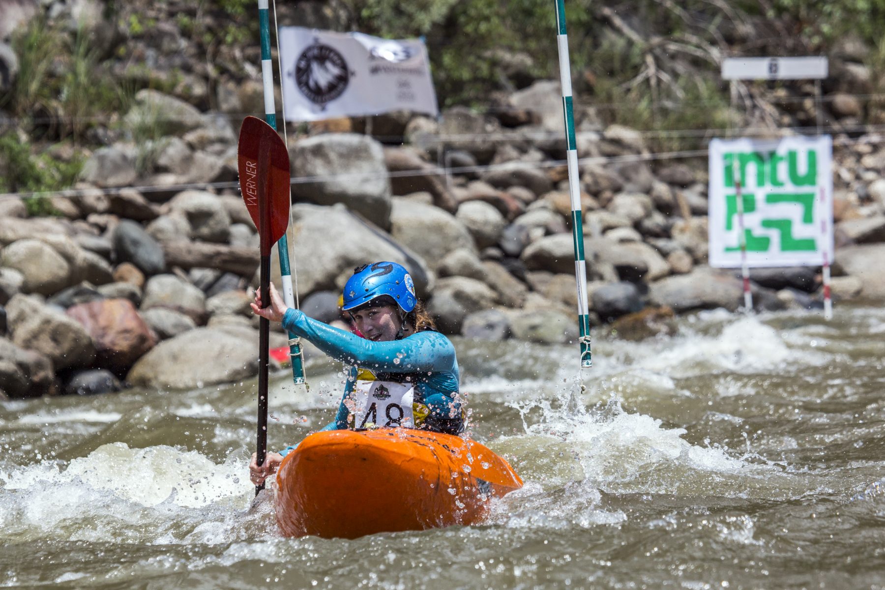 Sunday was reserved for all slalom races in the Quellomayo area were the racecourse was particularly hard compared to last year’s edition due to an unexpected increase in water levels. The 12-gate circuit was built over 100mts of class III rapids. Aleix Salvat was the only kayaker able to do both runs clean and took the win in senior category and kayaker Irina Medunyak won her second gold medal as she was the best female on the course.