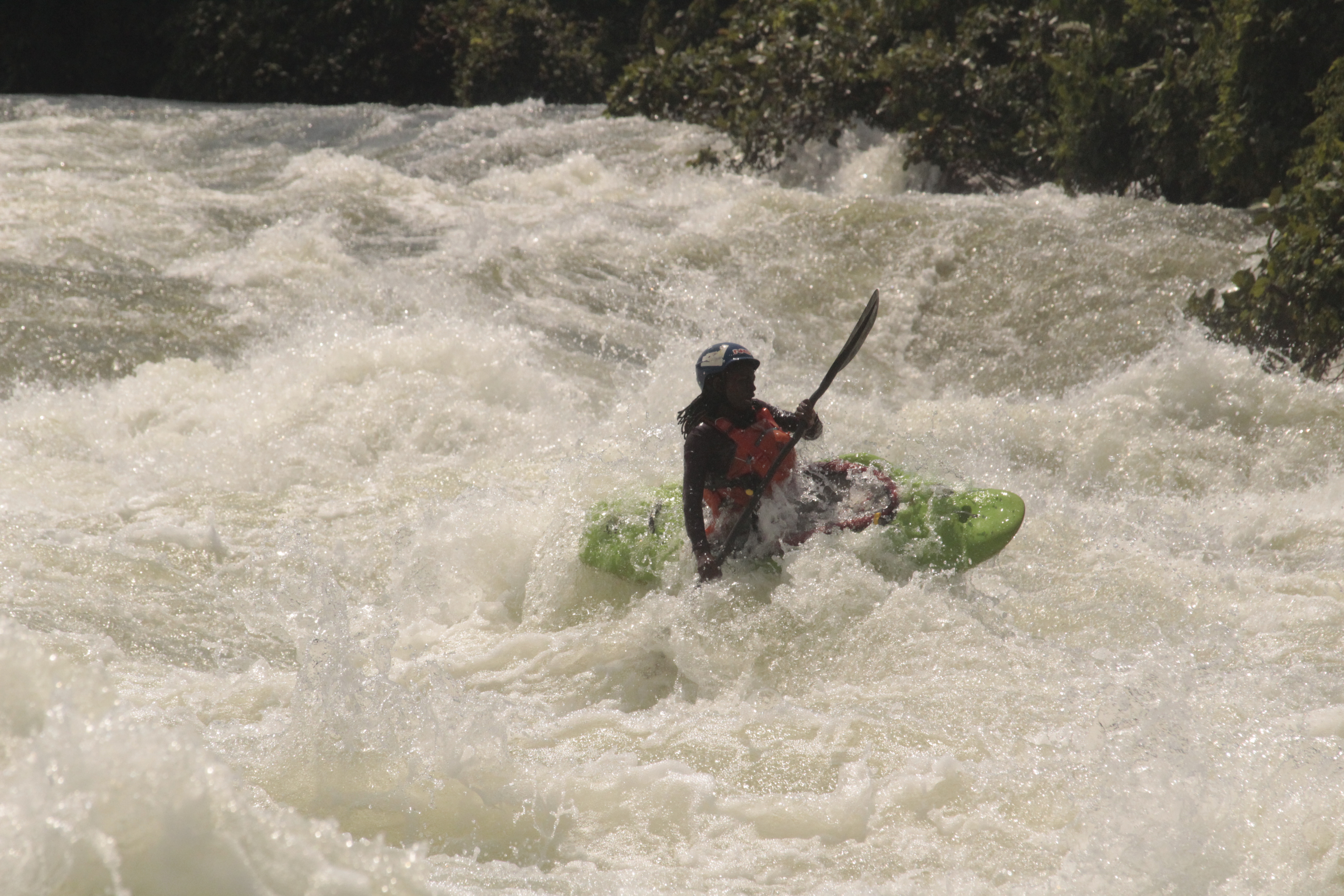 The women’s finals included two exceedingly fearless kayakers; local crusher and emerging honey badger Amina Nakirya (UGA) and defending UNLEASHED champion Darby McAdams (USA). The two brave women battled it out through the crux of the Dead Dutchman until Amina got pulled wayward by a large whirlpool. Darby stayed focused and on-line through the entirety of the rapid to earn her 2nd victory of UNLEASHEDxUganda.