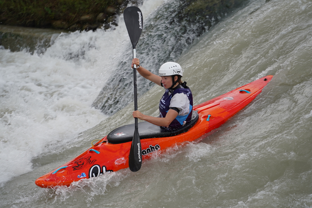 I love all kinds of kayaking. I always try to find a new creek or river to paddle when I’m home. I like to use my Pyranha Ripper, so I can still do some slalom moves! At some of the World Cups, I’ve also competed in Extreme Slalom, which is like boatercross. You launch from a bridge in a plastic boat and compete head to head with three other boats, while navigating a few gates.