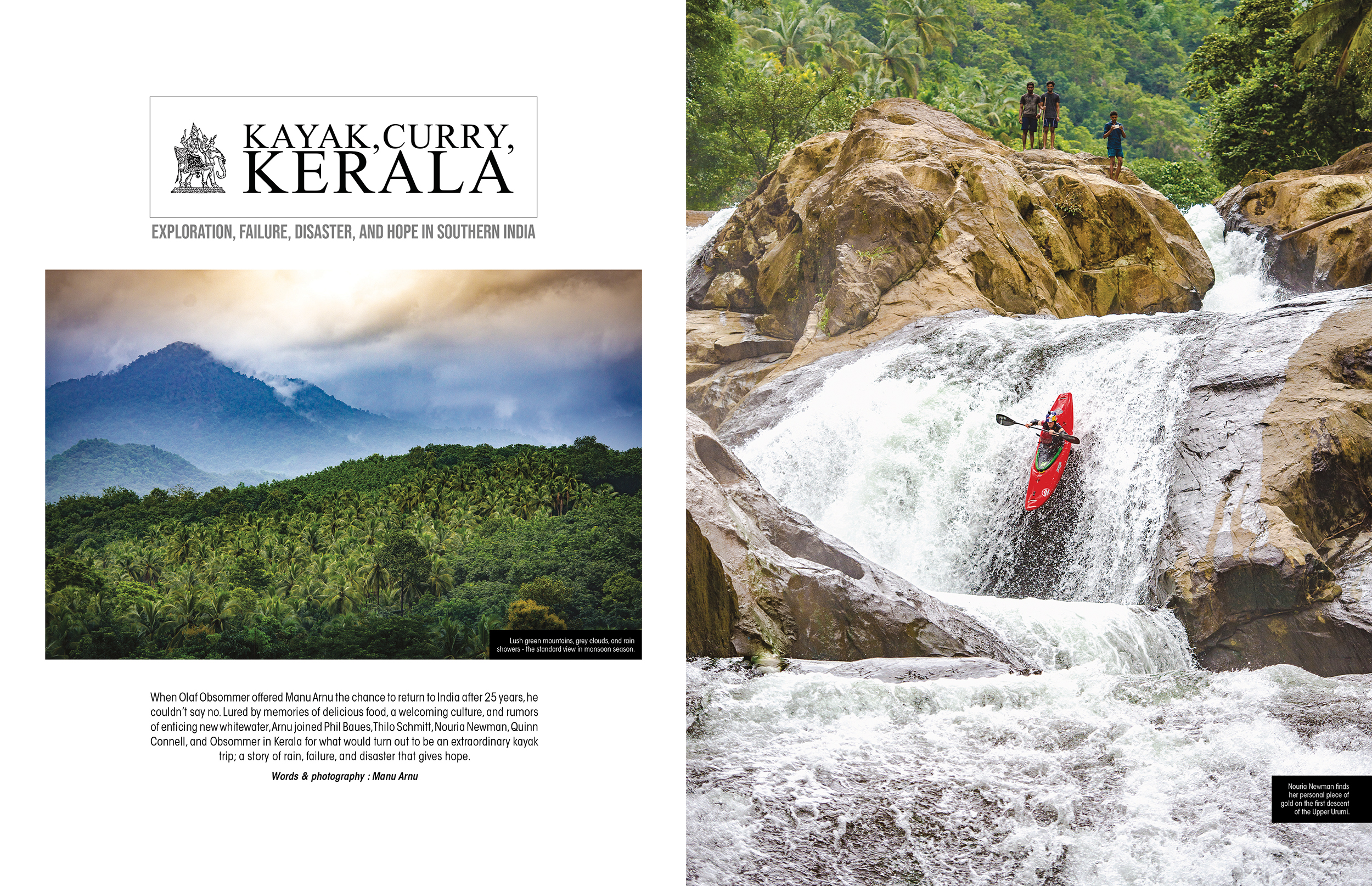 When Olaf Obsommer offered Manu Arnu the chance to return to India after 25 years, he couldn’t say no. Lured by memories of delicious food, a welcoming culture, and rumors of enticing new whitewater, Arnu joined Phil Baues, Thilo Schmitt, Nouria Newman, Quinn Connell, and Obsommer in Kerala for what would turn out to be an extraordinary kayak trip; a story of rain, failure, and disaster that gives hope.
