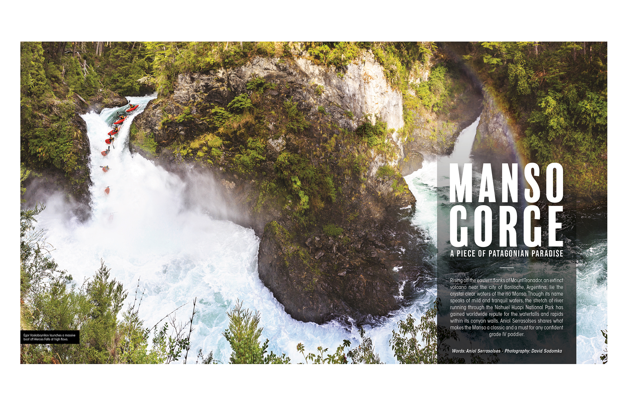 Rising off the eastern flanks of Mount Tronador, an extinct volcano near the city of Bariloche, Argentina, lie the crystal clear waters of the rio Manso. Though its name speaks of mild and tranquil waters, the stretch of river running through the Nahuel Huapi National Park has gained worldwide repute for the waterfalls and rapids within its canyon walls. Aniol Serrasolses shares what makes the Manso a classic and a must for any confident grade IV paddler.