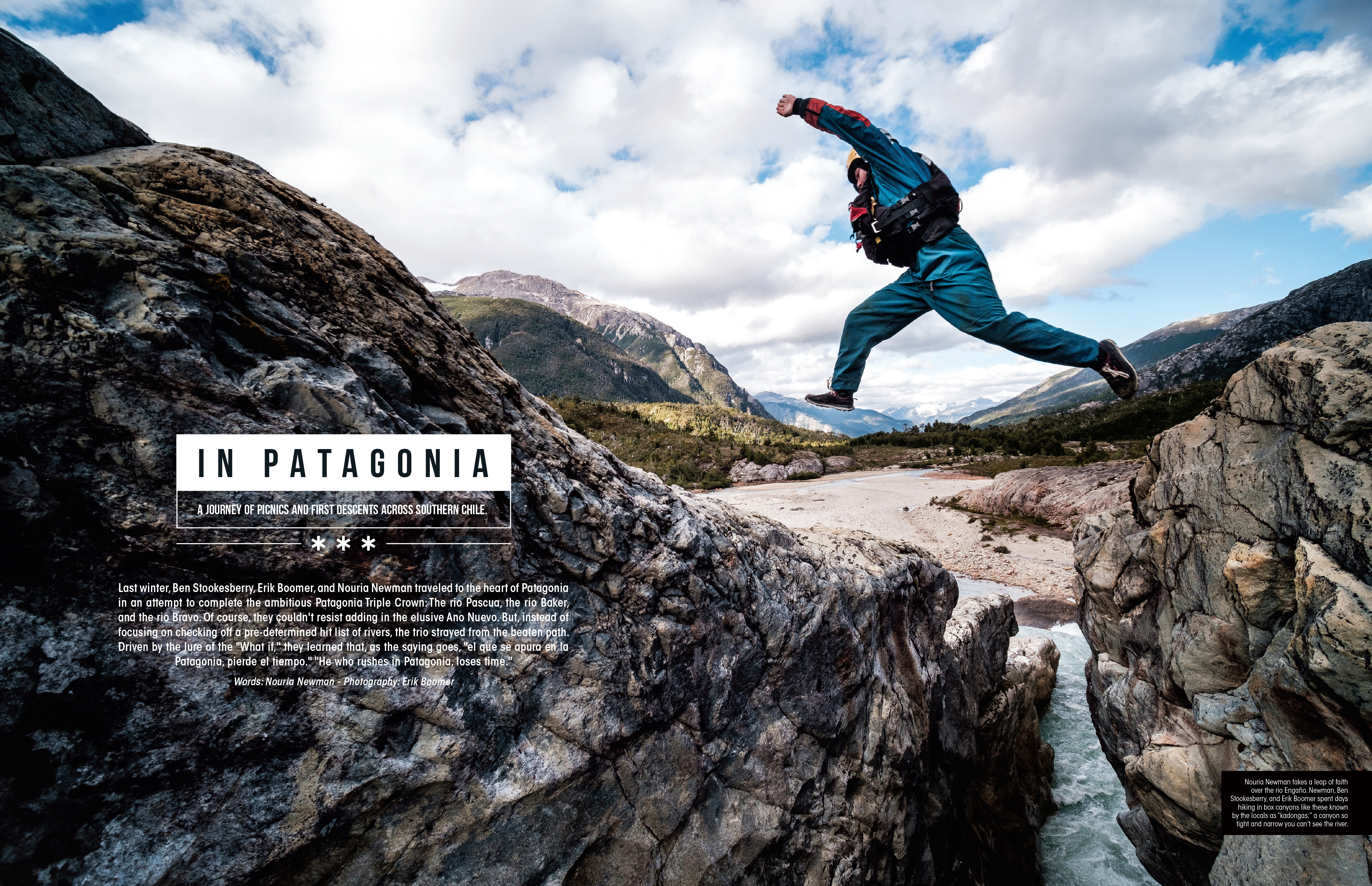 Ben Stookesberry, Erik Boomer, and Nouria Newman embark on a journey of picnics and first descents across Southern Chile. As they attempted to check off the Pascua and the Bravo, they couldn’t resist adding in the Engano and the Ano Nuevo, among others. Along the way, they found that sometimes the mission is less about the rivers and rapids you run than the journey itself.