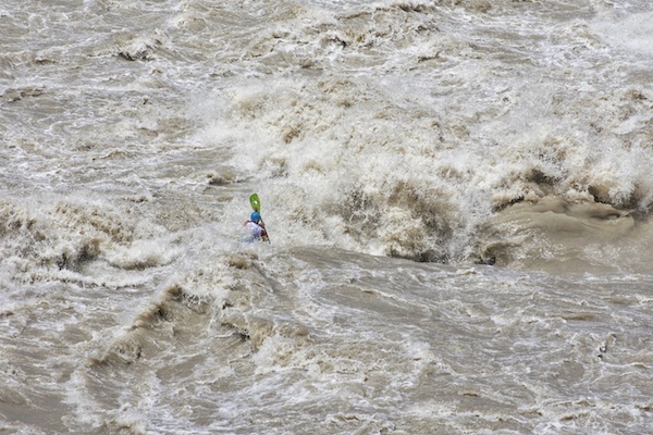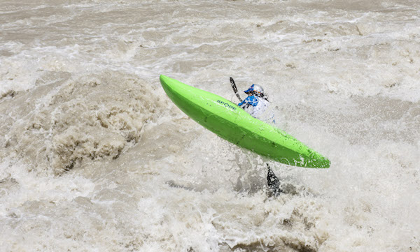 There were four parts to the competition; Super Sprint, Extreme Slalom, Boater X and Mass Boater Cross. The Extreme Slalom tested Kayakers strength and technical abilities as they travelled across the river touching key markers. Indian kayaker Daman Singh led the charge with a beautiful display of both power and finesse surfing the huge crashing wave and touching all the markers.