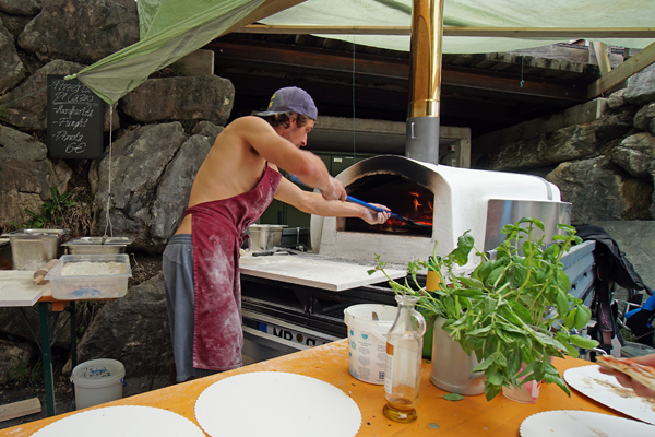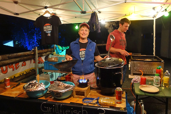 There was a serious side to the Lofer Rodeo this year as well. Currently, a run of the river power plant plan is threatening the lower Saalach river. This is a seven-kilometer scenic beginner section between Unken and Schneizelreuth. To help educate on the effects and conquences of dams and run of the river projects the documentary, Blue Heart, was added to the rodeo program. The film is about the destruction of Europe’s last wild rivers in the Balkans and was shown in an open-air cinema on the banks of the Saalach, friday evening. The Alpine Kayak Club, AKC, also helped with fundraising for the Free Rivers Fund. They ran the food cart, Nude Boys Pizza stand and sold the new AKC/Free River Fund T-shirts all in support of the Free Rivers Fund and the young grassroots initiative to save the Saalach river. The first print edition of T-shirts sold out with more will be available soon from AKC President Jobst Hahn.