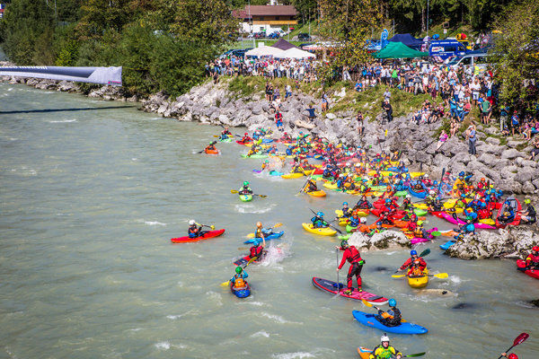 The weekend of 14 to 16 September was a blinding success for the Whitewater Slaves of Lofer. 149 participants from twelve nations, watched as Daniel Klotzner, from Italy, successfully defended his title, and the best party of the season lit up at the Lofer Rodeo. Over 180 paddlers, stand-up paddlers and rafters joined together for the « Day of the Saalach river » to protest against the planned diversion dam in Unken.