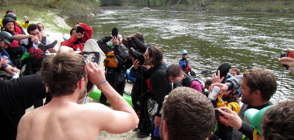 The final boater X in heats of 6 allows to classify the teammates who are now confronting each other to get as many points as possible for the Quebec Extreme Whitewater Race Series. Everybody is happy to arrive at the take-out beach where the cold beer is much appreciated… in cans or in the booties for those many ones who swam during the day!