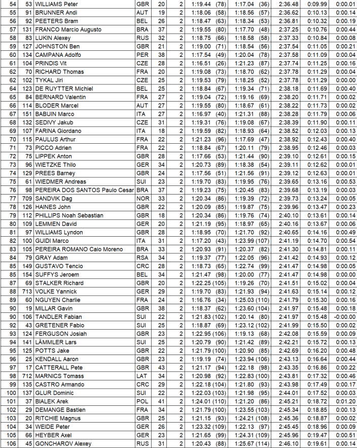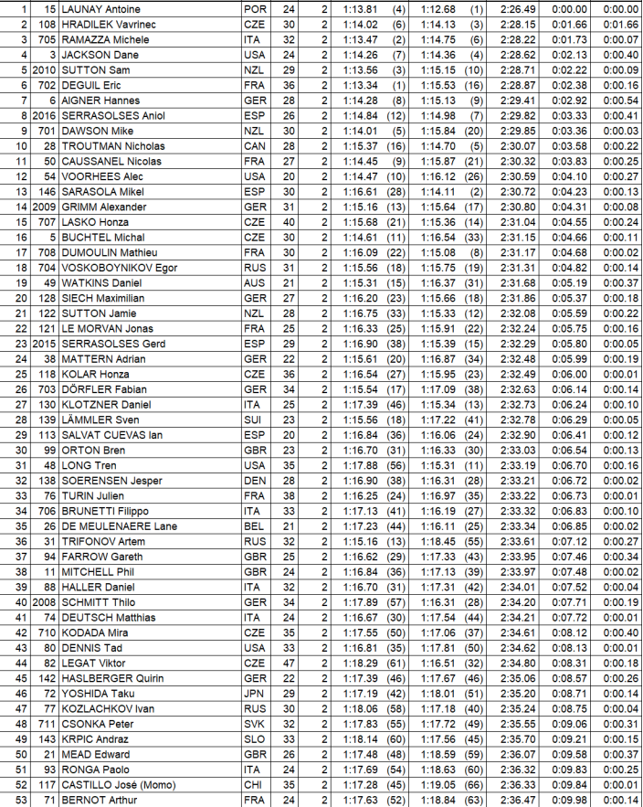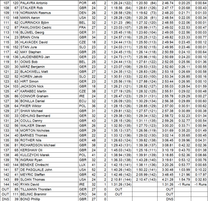 Men Qualifiers Results (Top 52 move to Quarter Finals on Saturday October 7th)