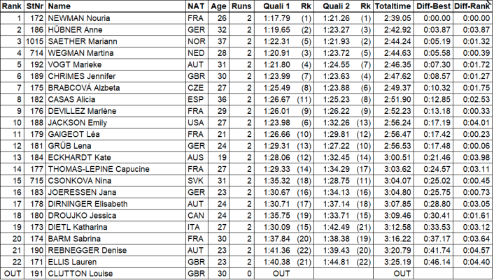 Women Qualifiers Results (Top8 move to Finals on Saturday October 7th)