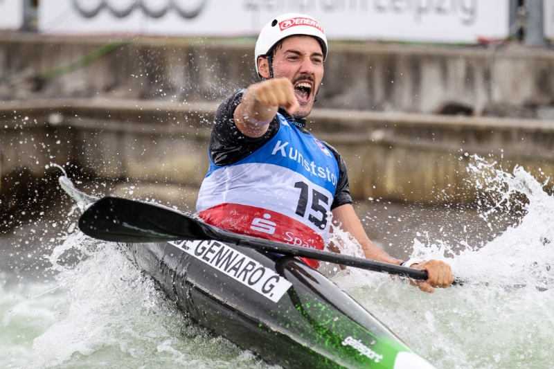 Italy’s Giovanni De Gennaro and Australia’s Jessica Fox have waltzed away with canoe slalom World Cup titles in challenging weather conditions at Markkleeberg in Germany.