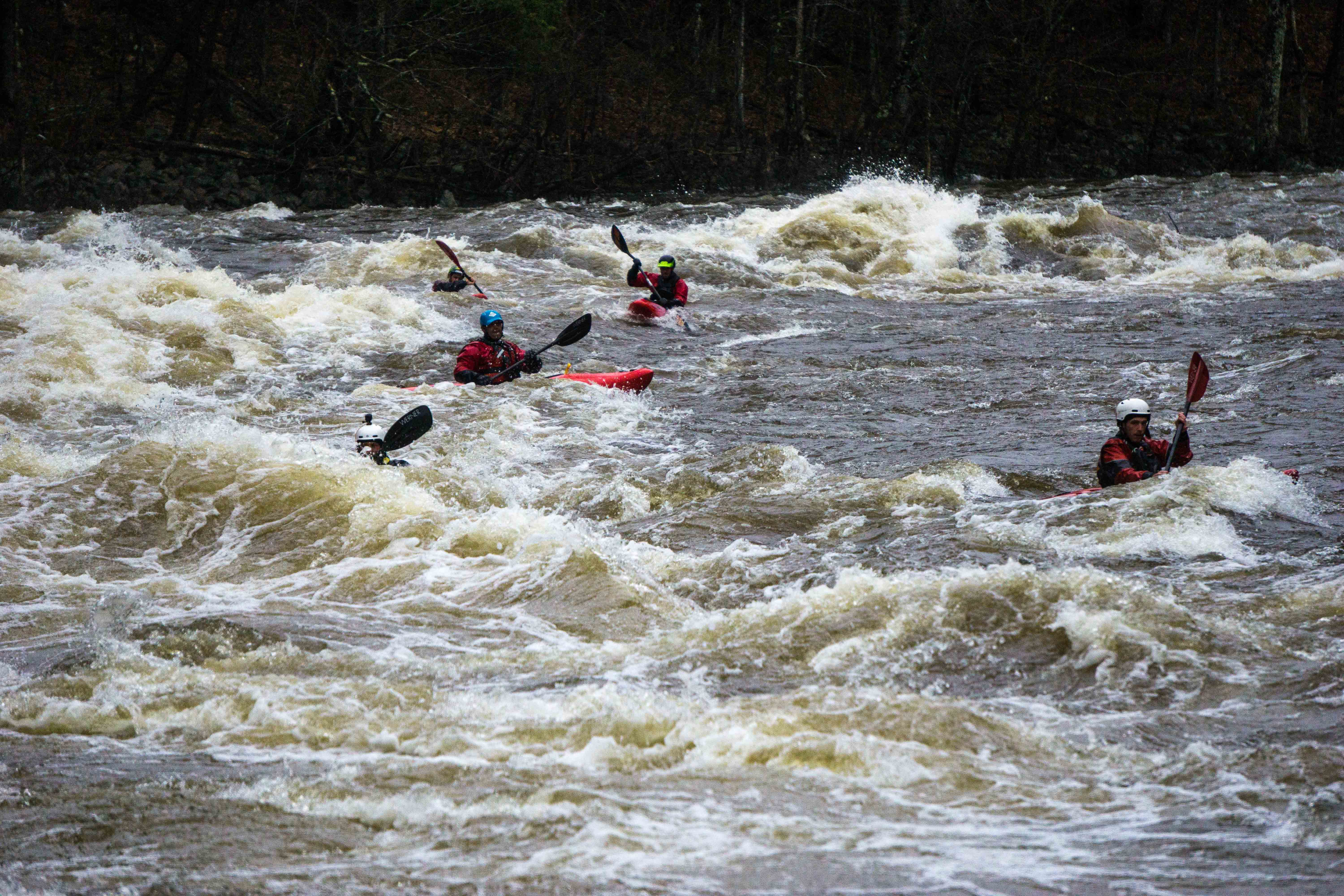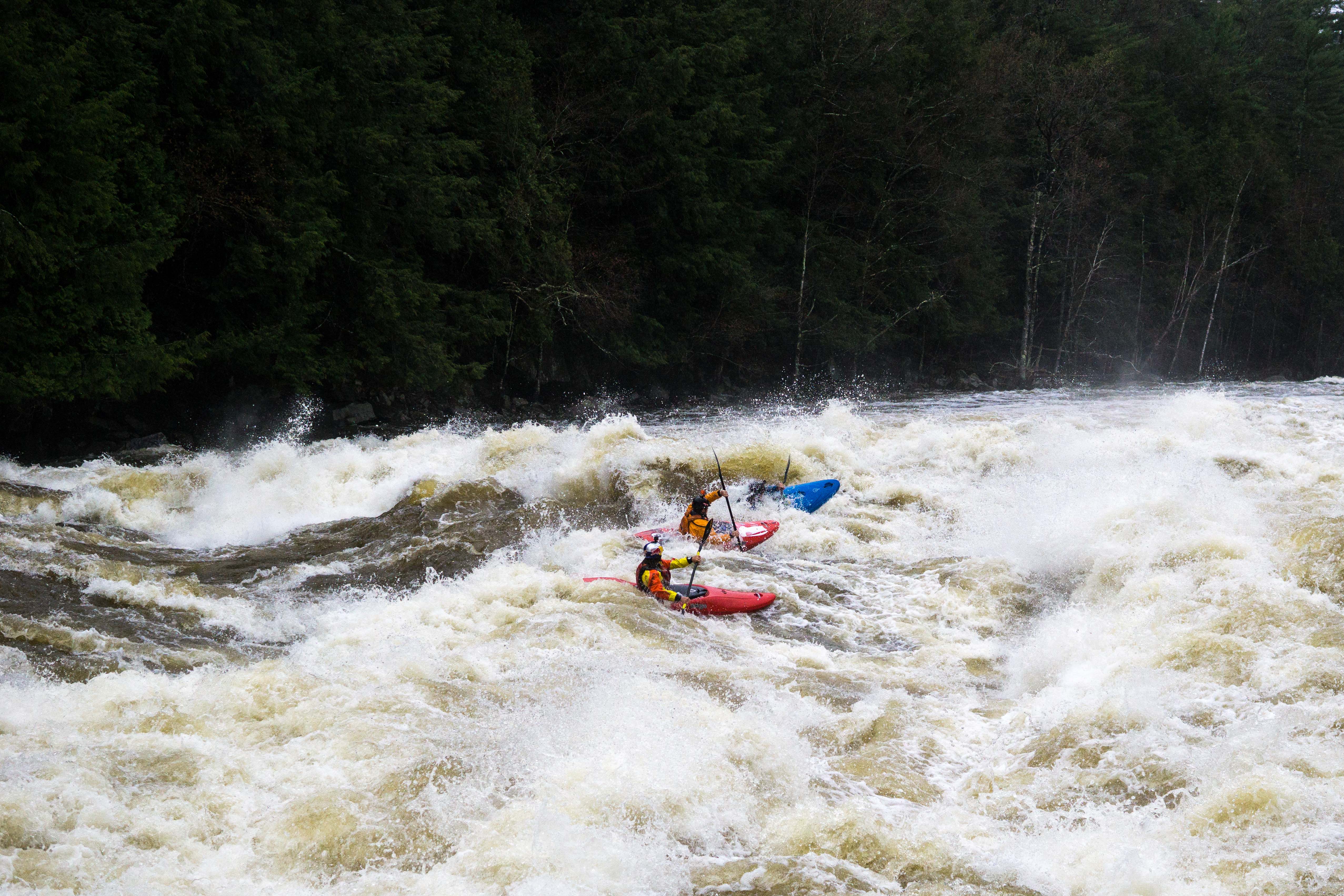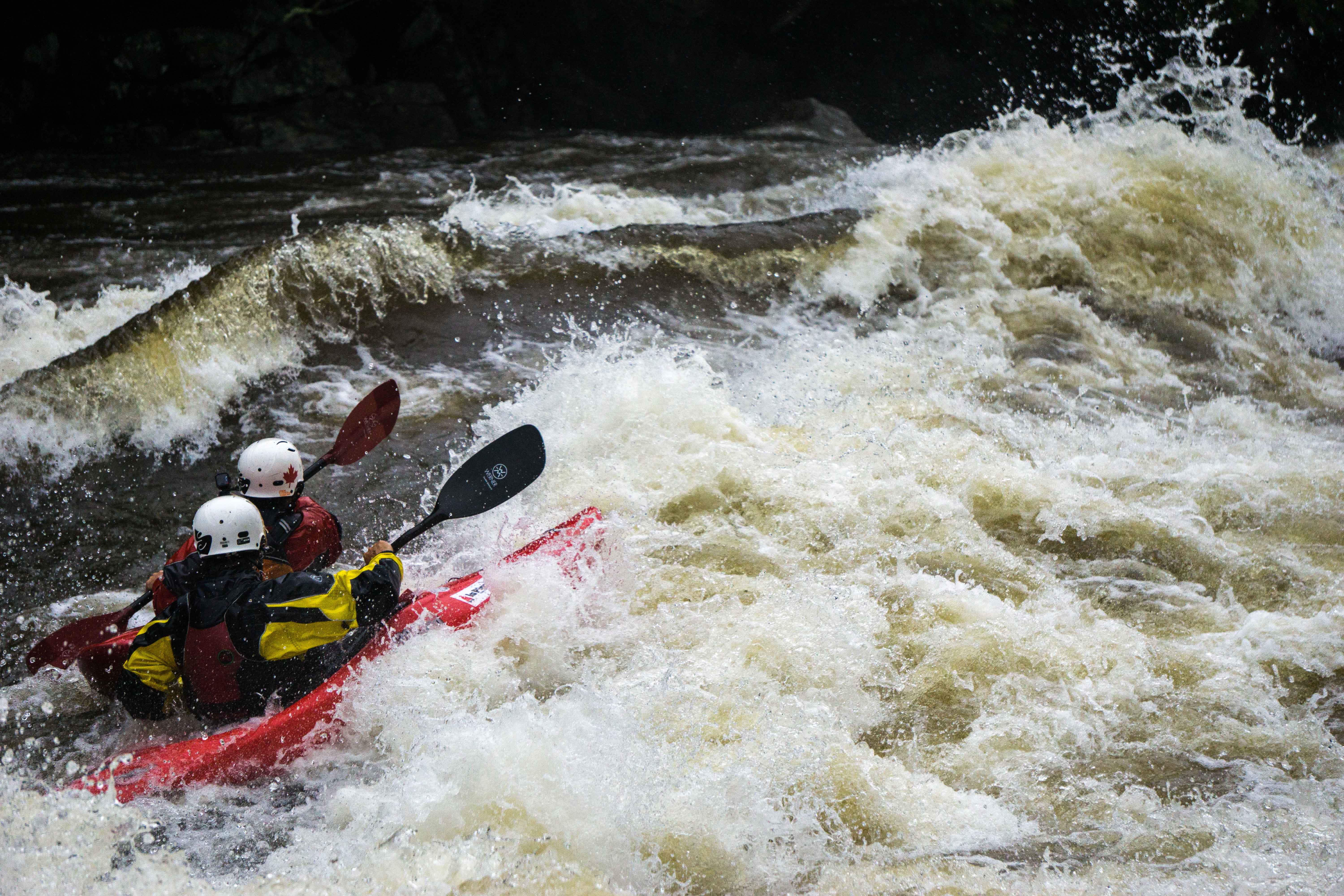 The rain gently fell on the over saturated ground as athletes slowly emerged out of the warmth and comfort of there sleeping bags. The rain has continuously pounded Western Quebec for the better part of the past 2 days and the forecast shows only rain as the rivers in the area trend towards historic levels. Everything was set for Stage 2, a chaotic Boater-cross on the Rouge River. The “Gauntlet” is a rapid that was formed for Boater-cross; its high volume and has massive waves, unpredictable reactionaries and general glorious chaos. Puddles created a minefield across the parking lot as we moved our morning meeting inside, athletes firing on all cylinders and coffee.